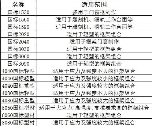 常用鋁合金型材規(guī)格表